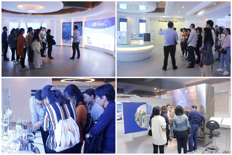 參觀一期新生產(chǎn)基地后,領(lǐng)導(dǎo)和專家們隨即參觀了泰林生物企業(yè)形象和產(chǎn)品展示廳,全面地了解了泰林生物的發(fā)展歷史、企業(yè)文化和核心產(chǎn)品,對無菌隔離器系統(tǒng)、過氧化氫滅菌器、無菌檢測系統(tǒng)、微生物檢測系統(tǒng)及TOC分析儀等產(chǎn)品產(chǎn)生了極大的興趣。參觀的同時也對產(chǎn)品的操作及性能特點(diǎn)展開了交流、討論,充分肯定了泰林生物的科研成果和技術(shù)水平。